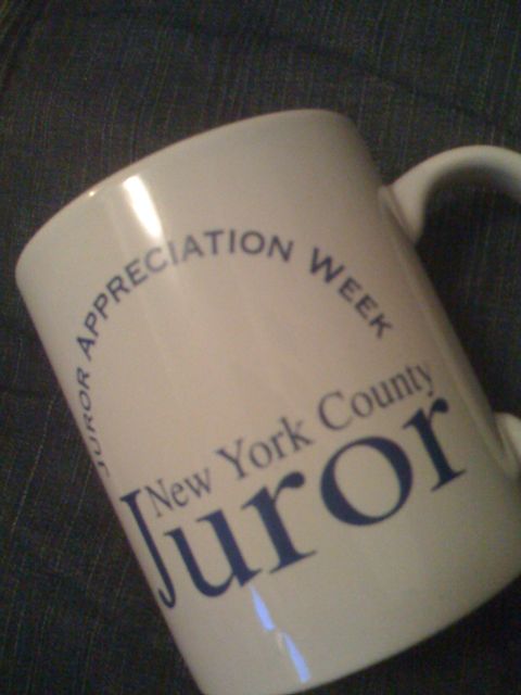 I think I want to re-read Twelve Angry Men. I was in an all-female produuction of it in high school. And if my memory holds, this is really the same damned thing. Humanity crammed in a room to determine the fate of another human being. It is a beautiful if flawed system when the people weighing in on your fate are tired, hungry, either overworked to get to jury duty or starving because they can’t work because they are in said jury duty. Reading the paper, checking blackberries, taking a nap.